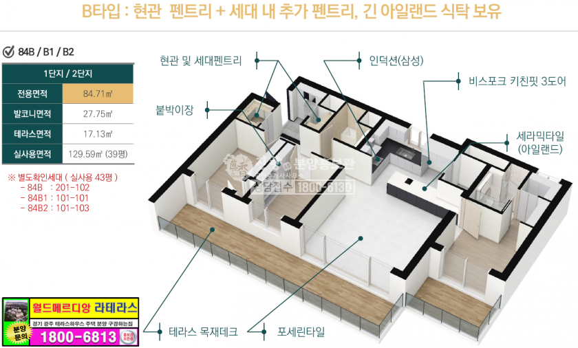 전 가구에 테라스가 조성되며 전용 84㎡ 단일