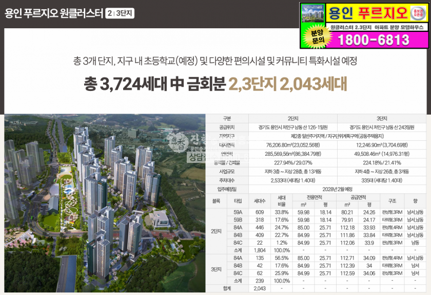 **용인 푸르지오 원클러스터 2.3단지 일반분양 아파트 특별공급분